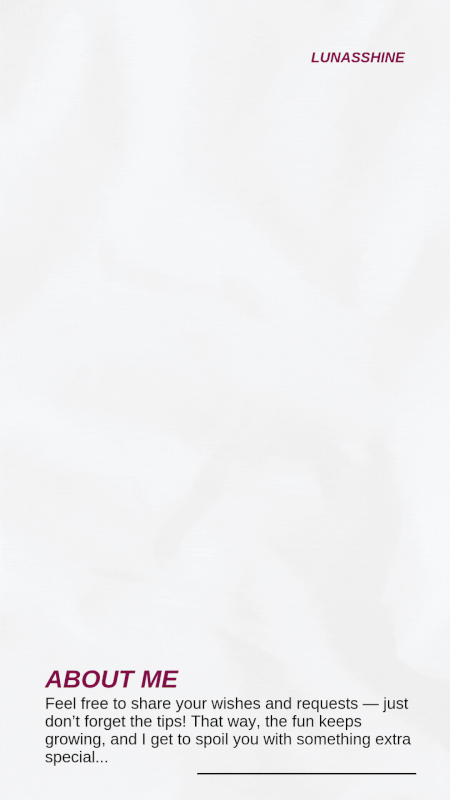 Puoi RICHIEDERE UN APPUNTAMENTO con Luna quando ti è più comodo. Tutto è impostato sul tuo fuso orario e sulle tue ore locali. Lei riceverà la tua richiesta e la accetterà se la sua agenda è libera. Riceverai una conferma via email e potrai prepararti per la tua esperienza piccante.